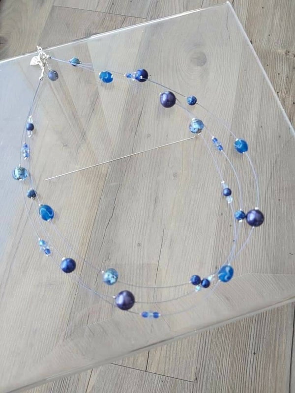 3 laags, blauwe glaskralen - € 7,50